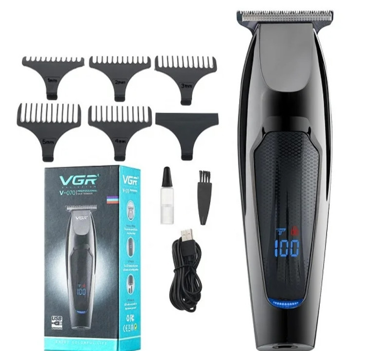 ماشین اصلاح وی.جی.ار مدل VGR V-070 از جدیدترین محصولات شرکت وی جی آر میباشد. جنس تیغههای این محصول از استیل ضد زنگ بوده، که در برابر هوا و رطوبت از ماندگاری بالایی برخوردار است. تیغههای خط زن VGR به شکل T بوده، که مخصوص سایه زنی و خط زنی است. ماشین اصلاح وی جی آر مدل V-070 از تکنولوژی برش مستقیم بهره میبرد، که موهای سر و صورت را با مرز بندی مشخص کوتاه میکند. برای اصلاح موهای بلندتر 5 عد شانه ارائه شده است. اینخط زن دارای باتری قابل شارژ بوده، که در مدت زمان 90 دقیقه شارژ شده و پس از آن میتوان به مدت 120 دقیقه از ریش تراش استفاده کرد. از ویژگیهای این محصول میتوان به صفحه نمایش آن توجه کرد، که میزان شارژ باقی مانده را نشان میدهد. به همراه ماشین اصلاح VGR V-070 Hair Trimmer روغن، برس تمیز کننده، کابل USB و 5 عدد شانه ارائه شده است.